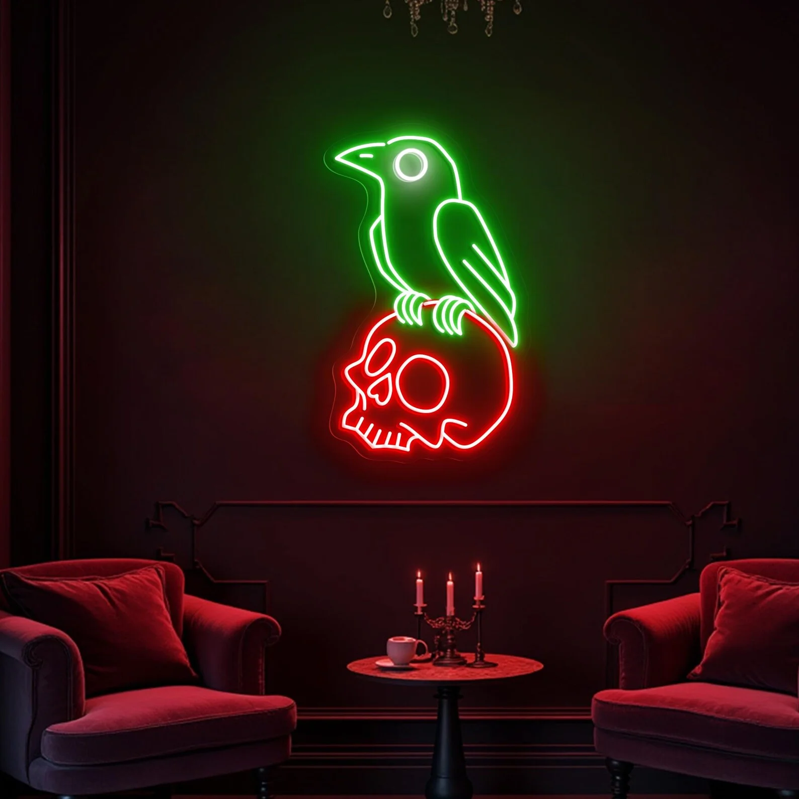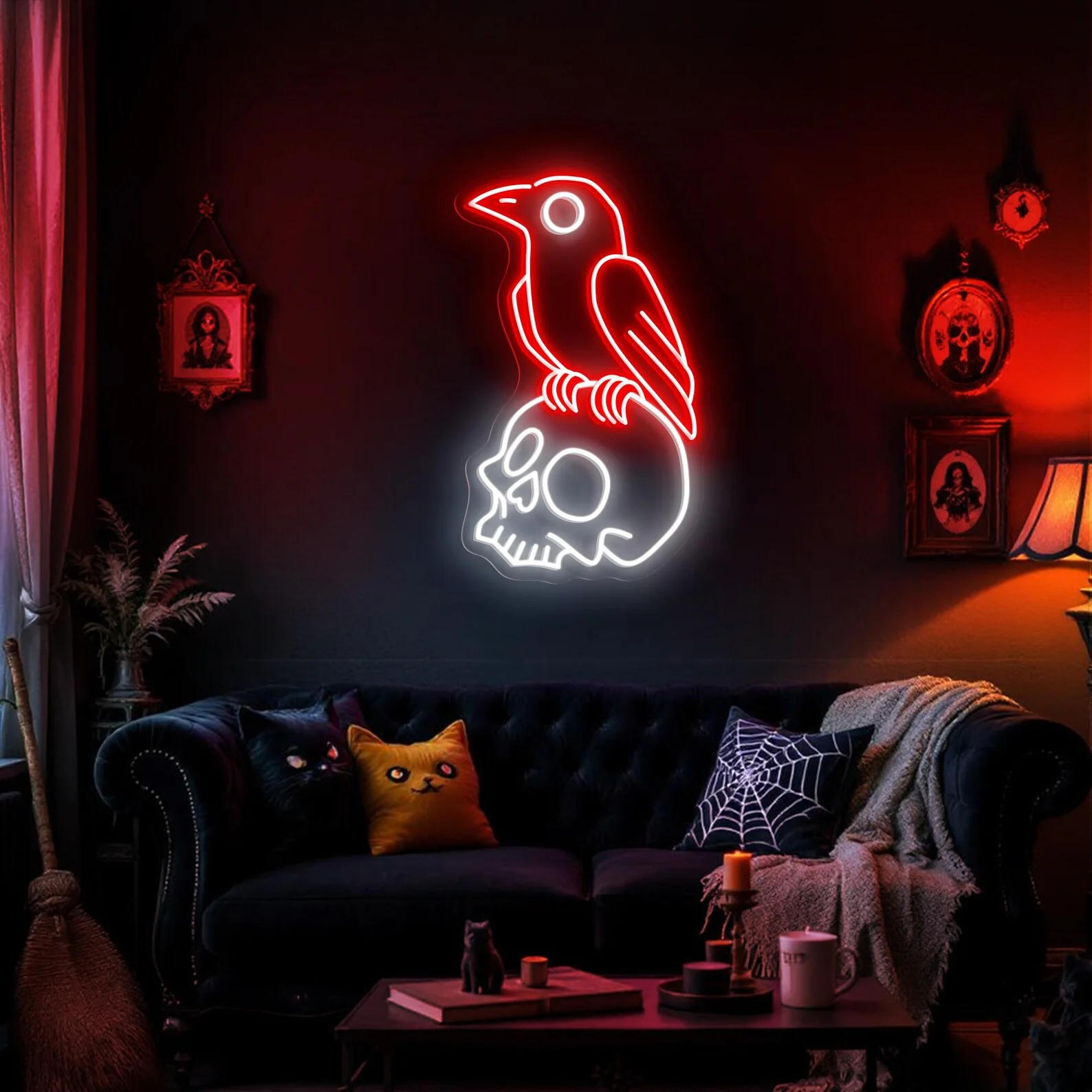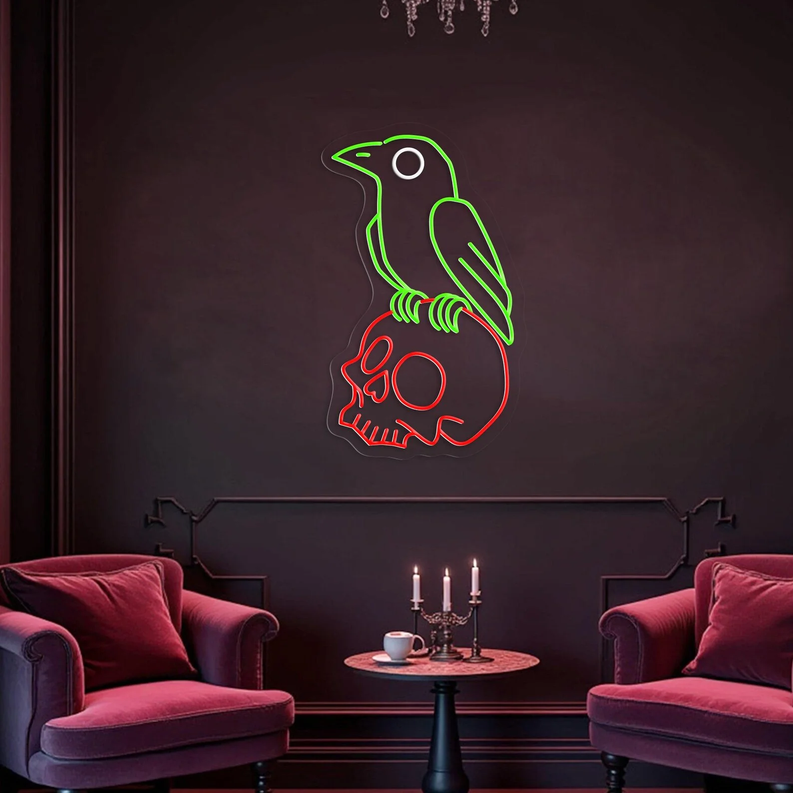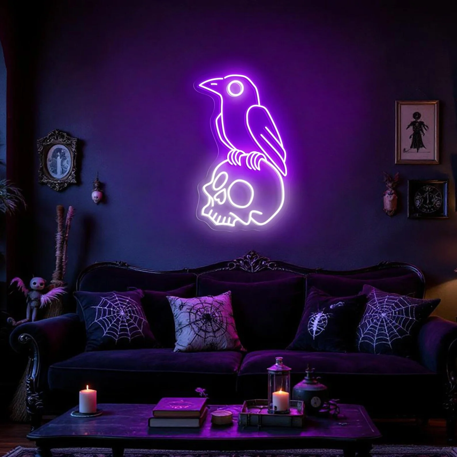 Raven On Skull Neon Sign Skeleton Neon Skull Halloween Decor